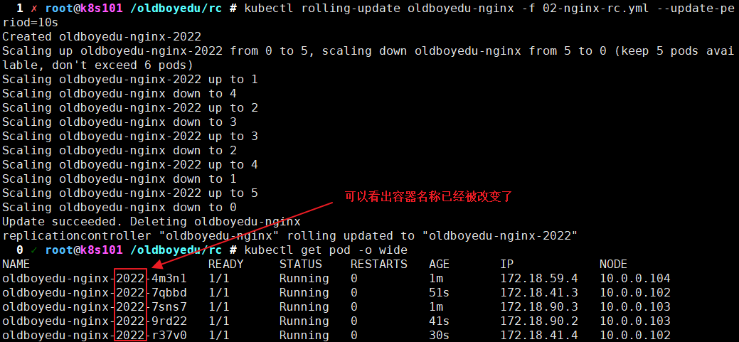 kubectl rolling-update oldboyedu-nginx-2022 -f 01-nginx-rc.yml --update-period=1s温馨提示:
