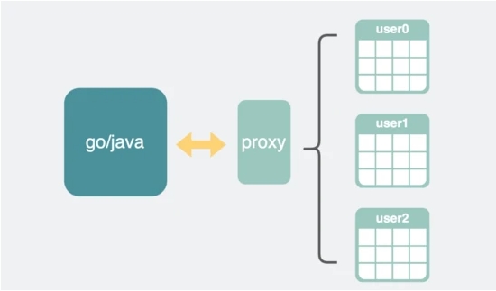 假设现在有条数据,id=3kw,将这个 3kw除2kw = 1.5 ,向下取整得到 1 ,那就可以得到这条数据属于 user1表 。于是去读写user1表就行了。这就完成了数据的路由逻辑,我们把这部分逻辑封装起来,放在数据库和业务代码之间。