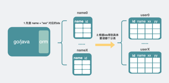 但如果我们为name列 建个新表(nameX),以name为新的分片键 。