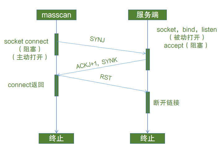 一般情况下进行端口扫描,通过传统的TCP握手过程,需要进行三次握手来建立连接:客户端发送SYN数据包,服务器返回SYN+ACK数据包,最后客户端发送ACK数据包。这样的握手过程相对较慢,一台机器就算把65536个端口全部用来扫描速度也不快,不适合高速扫描。