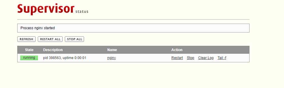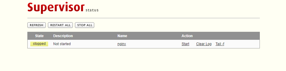 command=/usr/./sbin/nginx -g daemon off; user=rootautostart=falseautorestart=truestopasgroup=truekillasgroup=truestdout_logfile=/etc/supervisord.d/nginx-out.logstderr_logfile=/etc/supervisord.d/nginx-err.log1.2.3.4.5.6.7.8.注意:要根据自己服务器安装的nginx路径为准来配置nginx.ini 文件。