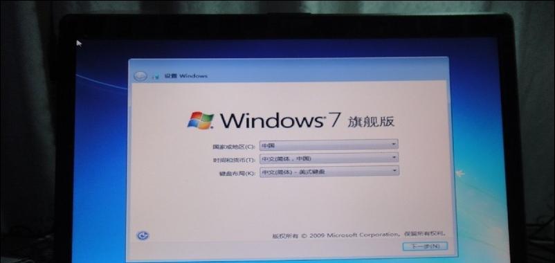 保存BIOS设置并退出,电脑将会自动从U盘启动。稍等片刻,屏幕上会出现Windows7安装界面,选择相应的语言、时区和键盘布局等设置,点击“下一步”继续。