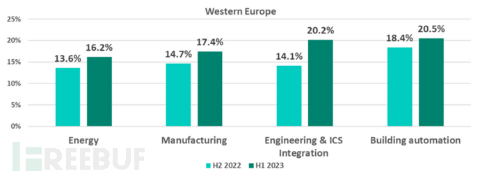 而在西欧地区,增幅最大的行业是工程和ICS集成(增幅为6.1个百分点)。
