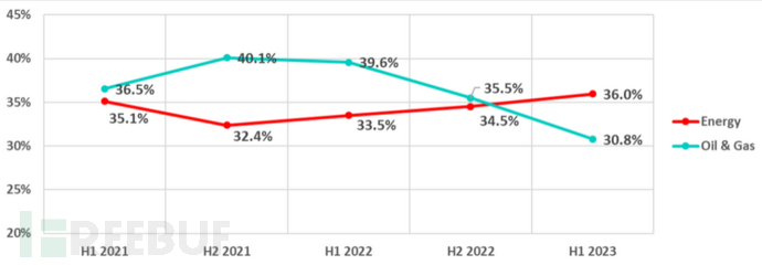 2023年上半年,在工程和ICS集成(增加2个百分点),制造(增加1.9个百分点)和能源(增加1.5个百分点)等行业中阻止恶意对象的ICS计算机百分比呈现增长趋势。