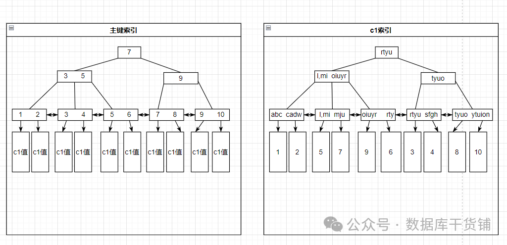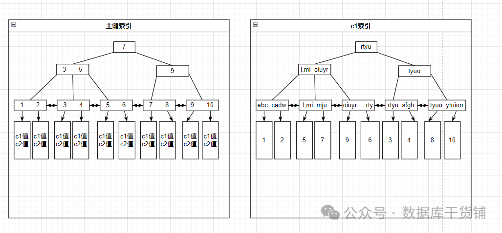 (1)索引内容上述2例中的差别在于test_tb1比test_tb2多了一个c2字段,这导致在进行c1 like %a%查询时,一级索引(主键索引)primary key 及二级索引(辅助索引)idx_c1的执行代价不同。