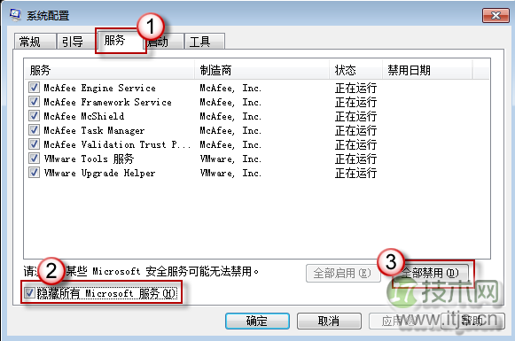 4、服务器租用净启解在“服务”选项卡上,动操单击以选中“隐藏所有 Microsoft 服务”复选框,作步骤详然后单击“全部禁用”。系行干