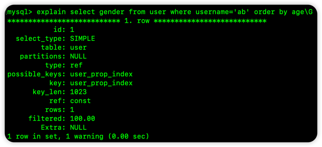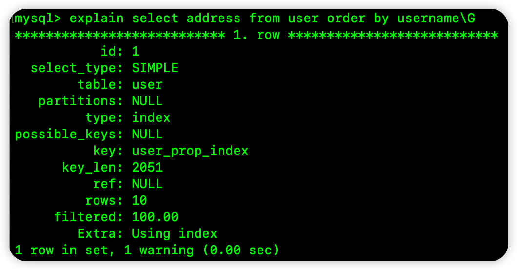 type:index 就说明了 MySQL 使用了索引扫描来进行排序的。