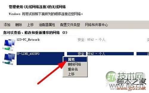 在这里出现了所有的无线网络用过的无线网络,找到你想要找回密码的密码无线网络,右键单击它,用办然后选择【属性】