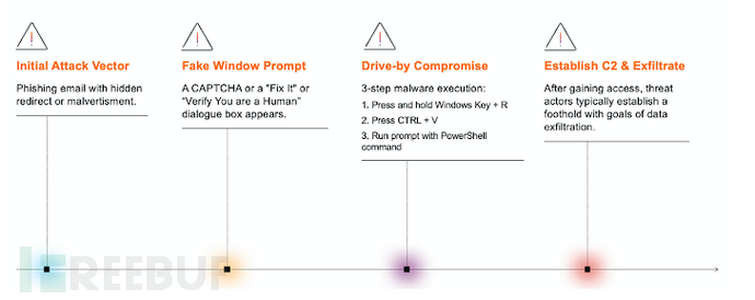 Darktrace分析的2025年4月某起事件中,不明威胁行为者利用ClickFix作为攻击载体,下载隐蔽载荷深入目标环境进行横向移动,通过HTTP POST请求将系统信息发送至外部服务器,最终实现数据外泄。