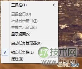 1.首先我们在任务栏空白处点击右键,置任选择“属性”;如下图所示: