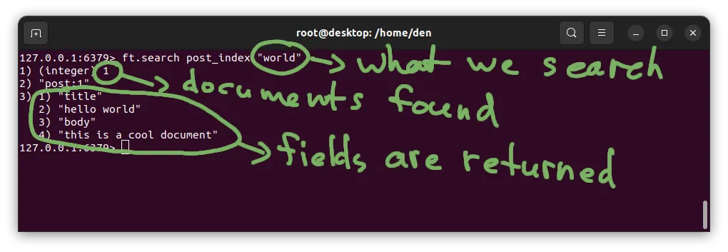 在这里,我们创建了 post_index 索引,它将索引以 post: 前缀开头的所有 Redis 哈希键。只有 title 和 body 字段才会被索引,并且索引立即生效。