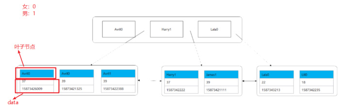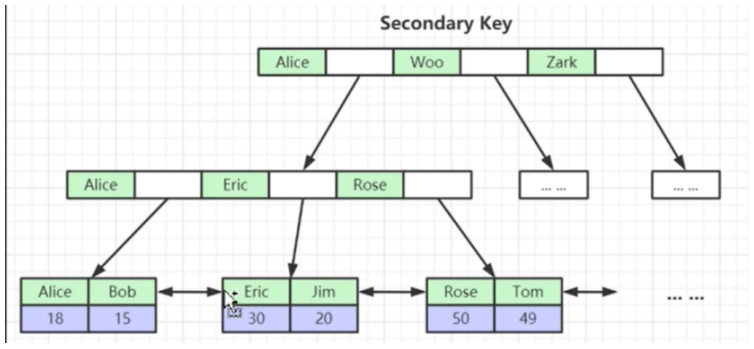 以上图为例子,先根据名字转成的ascii码进行排序,如果 ascii 码一样,那么再根据性别的 ascii 码大小比较排序。只有 username 的索引生效了,sex 的索引才有可能生效。要证明也很容易:如果没有匹配 username,直接匹配 sex,单看 sex 的话,我们索引的排序是无序的,就没法使用二分法了,所以不走索引。