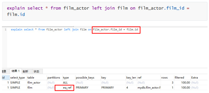 复制explain select * from film_actor left join film on film_actor.film_id = film.id1.