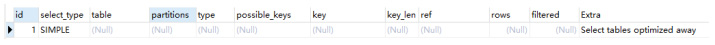 如果字段的总长度小于 max_length_for_sort_data,那么使用单路排序。如果字段的总长度大于 max_length_for_sort_data,那么使用双路排序。Select tables optimized away使用某些聚合函数(比如 max、min)来访问存在索引的某个字段时为 Select tables optimized away。