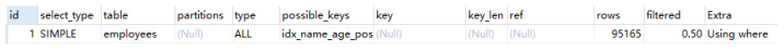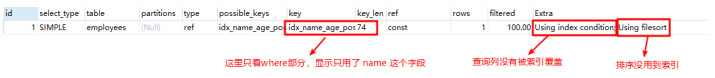 Using where使用 where 语句处理结果,并且查询列未被索引覆盖。如下: