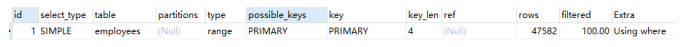 3.1.4 partitions使用的哪个分区,需要结合表分区才可以看到。因为我的例子都是没有分区的,所以是 null。