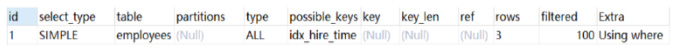hire_time 慢的原因是因为没有索引。