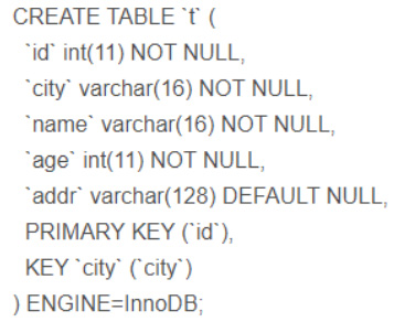 ) ENGINE=InnoDB AUTO_INCREMENT=100004 DEFAULT CHARSET=utf8 COMMENT=员工记录表;CREATE TABLE `actor` ( `id` int(11) NOT NULL, `name` varchar(45) DEFAULT NULL, `update_time` datetime DEFAULT NULL, PRIMARY KEY (`id`)) ENGINE=InnoDB DEFAULT CHARSET=utf8 COMMENT=演员表;CREATE TABLE `film` ( `id` int(11) NOT NULL AUTO_INCREMENT, `name` varchar(10) DEFAULT NULL, PRIMARY KEY (`id`), KEY `idx_name` (`name`)USING BTREE