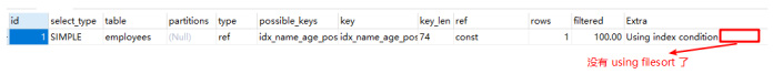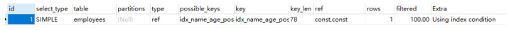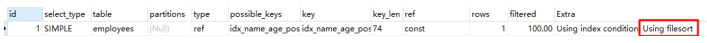 复制explain select * from employees where `name` = sai999 and position = dev order by age;1.