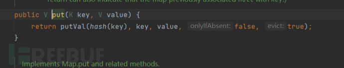 链子:HashMap类的put方法中调用了hash()方法->HashMap类的hash()方法中调用了hashCode()方法。