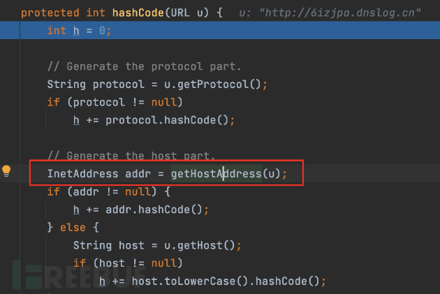 我们运行后发现 **hashmap.put(url,析利1);**put后便发起了dns请求即会导致我们收到dns后无法判断该dns是不是反序列化发出的。