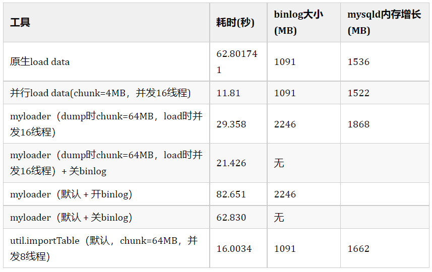 复制GreatSQL Py > util.load_dump("/data/backup_table",{"threads":"16","resetProgress":True})1.当然,我们也做过导入速度测试,下附测试结果,详细对比文章见 myloader导入更快吗?并没有。。。