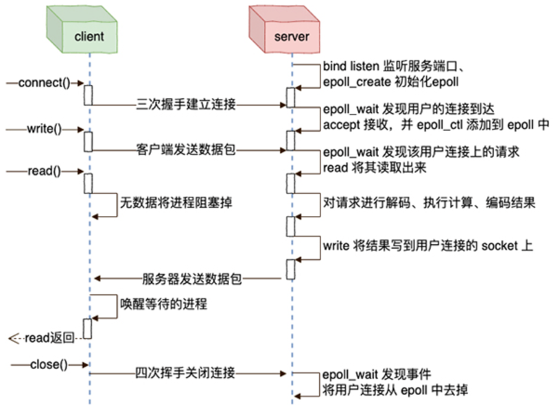 以epoll为例,简化版的Redis事件驱动交互过程。