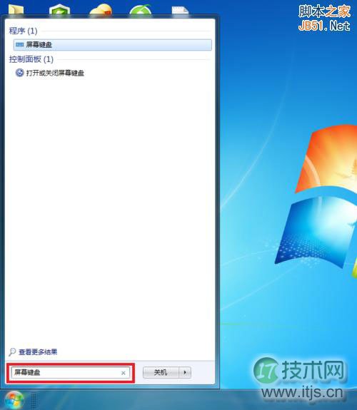 2、 输入“屏幕键盘”四个大字,结果会在你还没输完时就显现出来。