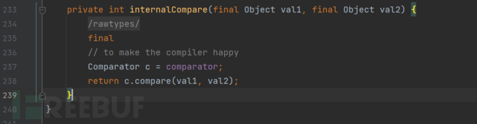 主要是利用通过调用了其comparator的compare方法,进而调用了transform链的原理调用,看一下之前的构造调用链。