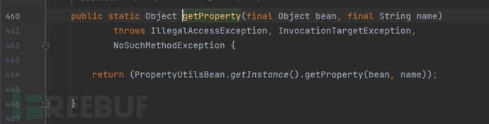 接收两个参数 bean (类对象)和 name(属性名),方法会返回这个类的这个属性的值,但是源码下载他不是直接通过反射取值,而是通过反射调用getter方法获取属性,进而经过恶意的构造,我们可以触发任意的getter方法。