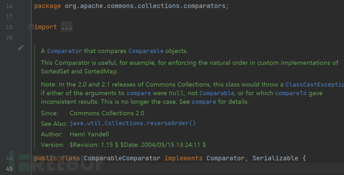 在前面对BeanComparator的分析中,提到了,在创建类对象的时候,将会判断是否存在有comparator属性值,如果没有将会创建一个ComparableComparator对象。