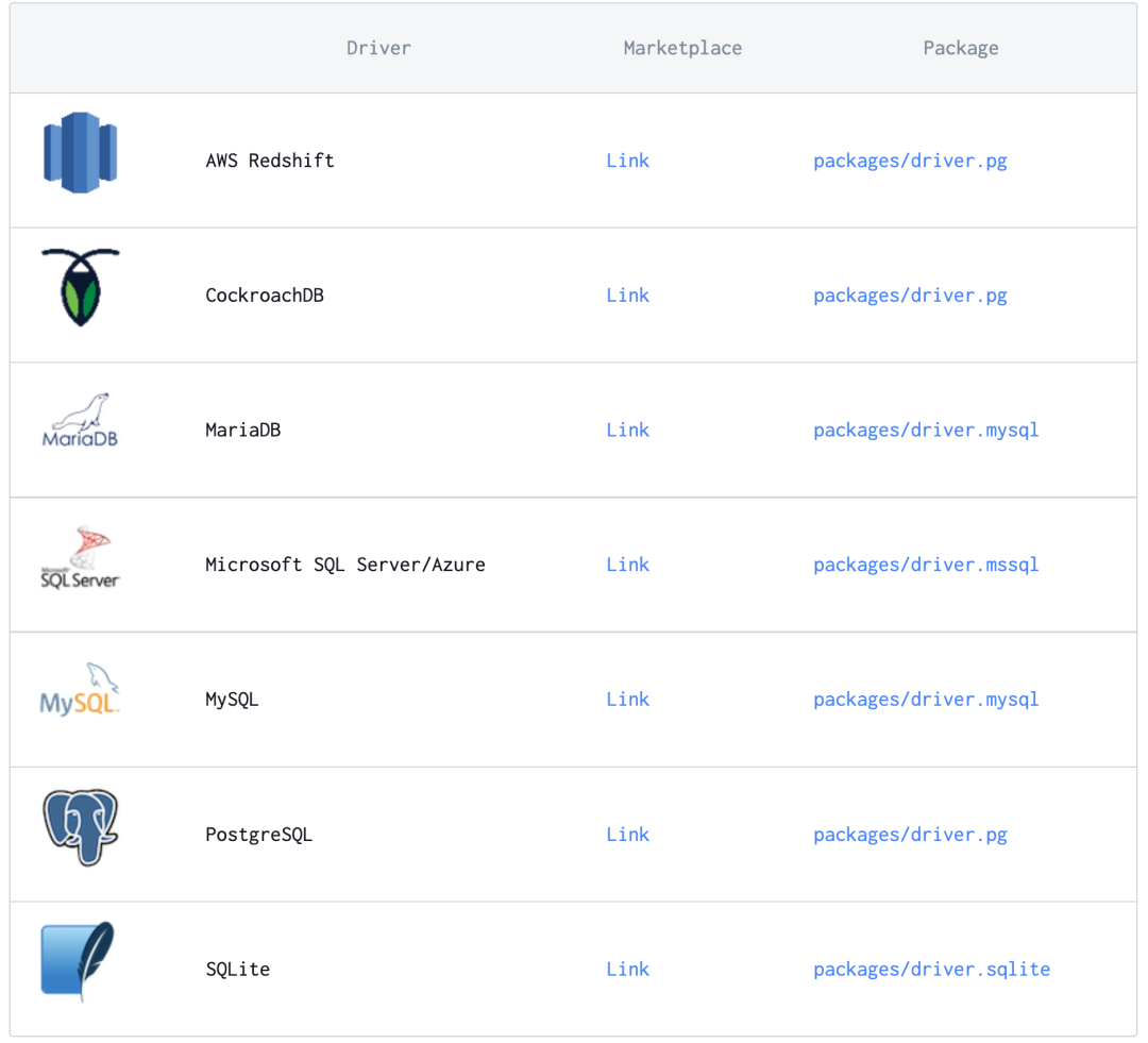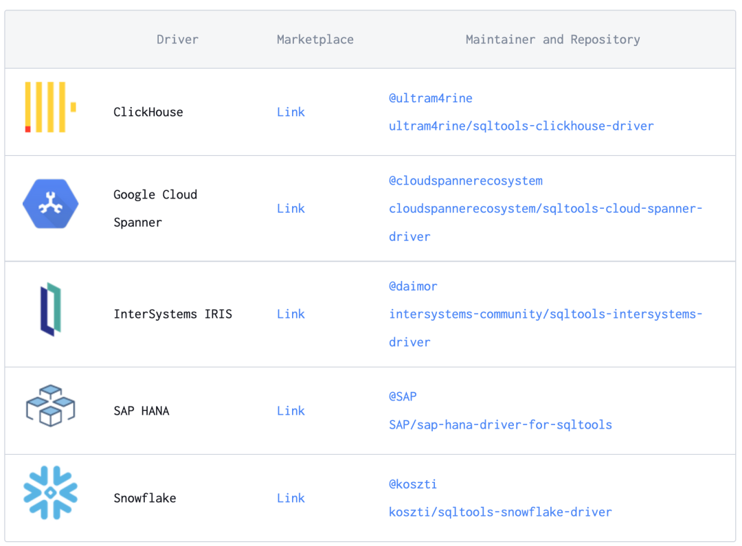 VSCode SQLTools 官方提供了很多常用数据库的据库驱动支持,包括:
