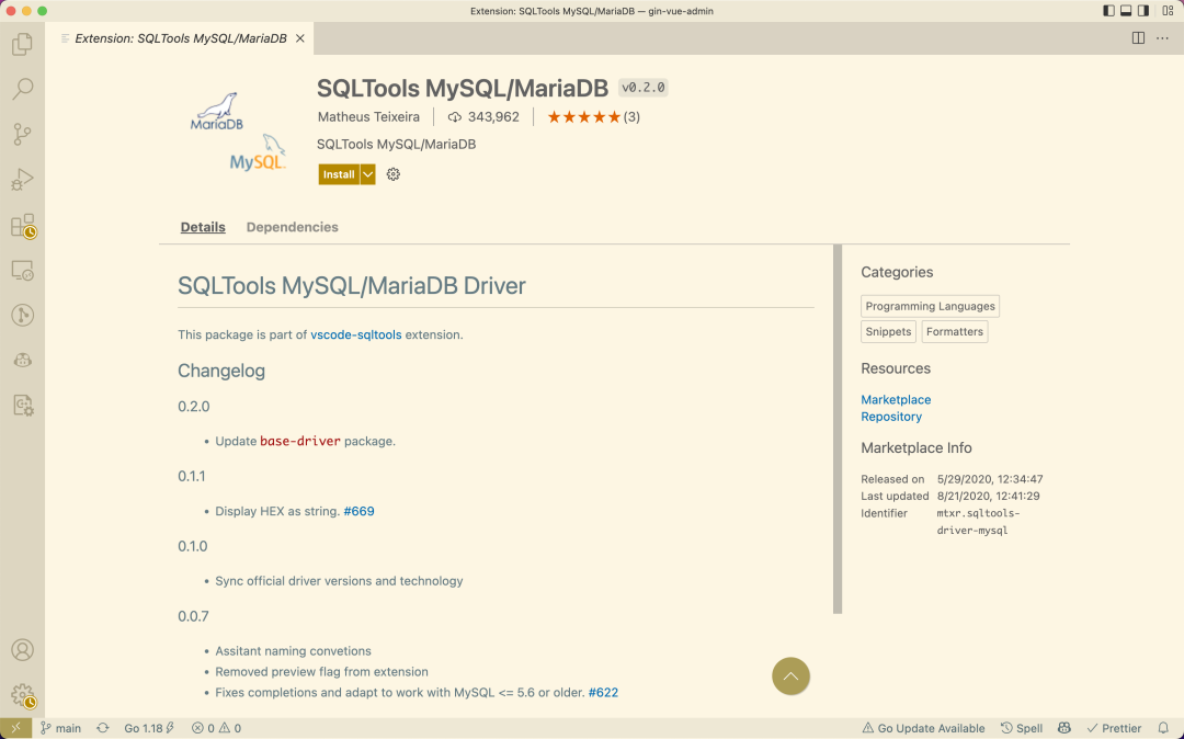 安装其实就是插件安装对应的源码下载数据库驱动,比如要想在 VSCode 中管理 MySQL 数据库,好用那么我们就选择安装对应的据库插件即可,地址 https://marketplace.visualstudio.com/items?管理itemName=mtxr.sqltools-driver-mysql,或者在 VSCode 插件中搜索 SQLTools MySQL/MariaDB 安装即可。