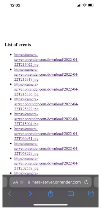 物联网的好处不仅在于您可以安全地远程存储图像,而且能够避免因有人窃取或损坏您的Raspberry Pi,而丢失数据。也就是说,您可以身处世界任何地方,通过使用服务器.env文件中记录的用户名和密码,访问并登录Render的完整URL,以查看照片数据,并及时捕获设备前的运动事物。下面的一组照片来自我家的摄像头。其中的最后一张记录了我爱人对摄像头进行测试的场景。