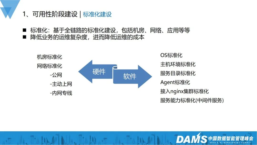 通过标准化,我们能够极大降低业务的运维复杂度,进而降低运维成本。我们在硬件和软件层面,都做了很多标准化工作。