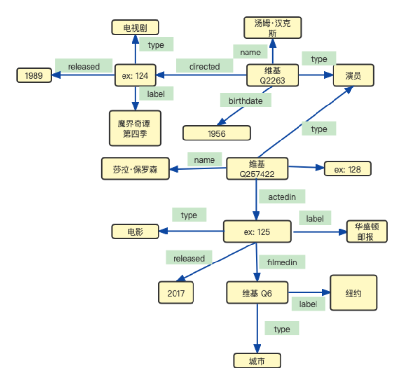 下图是一个RDF图片段的可视化示例,网站模板内容和属性图片段示例基本一致: