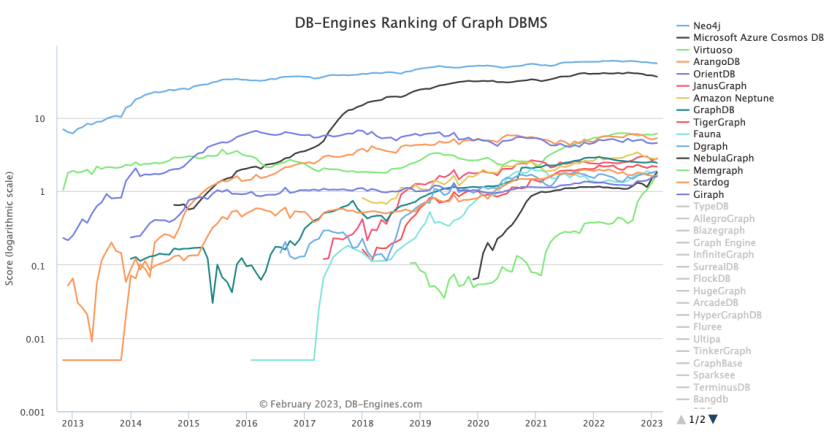 [3]https://db-engines.com/en/ranking_trend/graph+dbms 2023.2.23