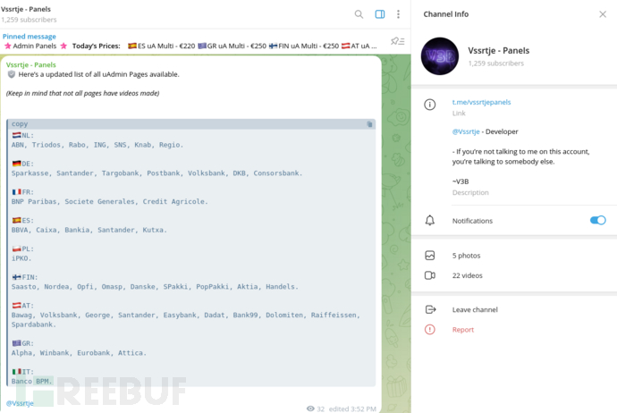 在 Telegram 上推广钓鱼工具包,来源:Resecurity