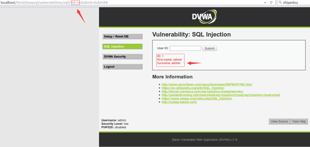 下面我们使用DVWA 渗透测试平台,作为攻击测试的目标,让你更加清楚的理解 SQL 注入猜解数据库是如何发生的。