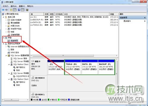 在“计算机管理”界面,文件选择“存储”,和关然后点击“磁盘管理”。文件