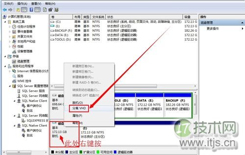 怎么关闭呢?点击磁盘分区左侧,邮件,下拉菜单选择“分离VHD”。在确定界面,可以勾选“删除此文件”。