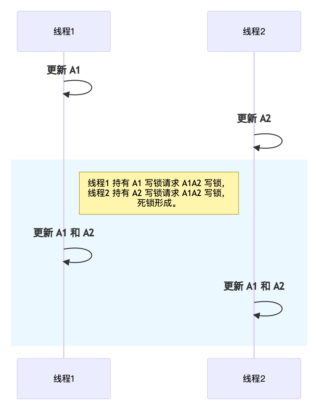 如此一来,如果出现类似以下的执行时序,则会形成死锁: