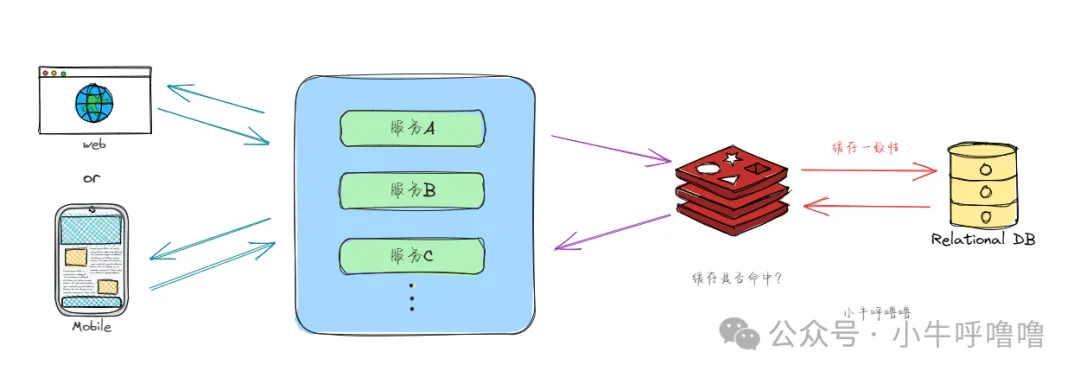 如今互联网应用,无论是引入web还是app,都基本遵循"前端-后端-数据库"的缓存会带架构模型