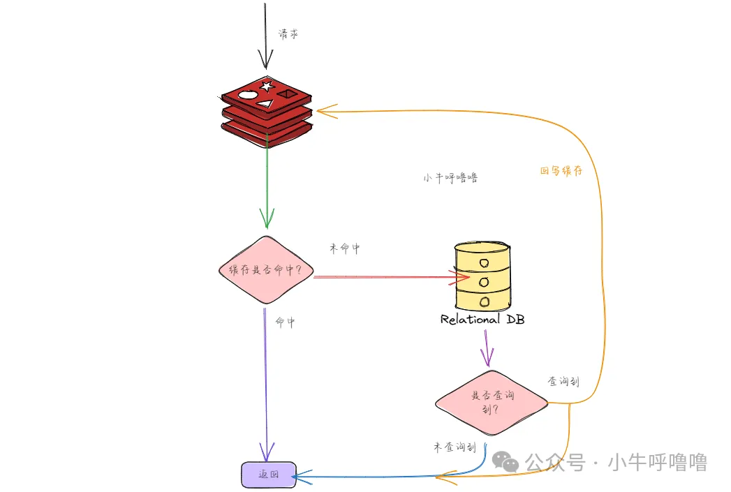 旁路缓存模式,是指优先查询缓存,查询不到再去查询数据库。如果这时候数据库查到数据了,就将缓存的数据回写更新,这样缓存可以为后续请求服务!