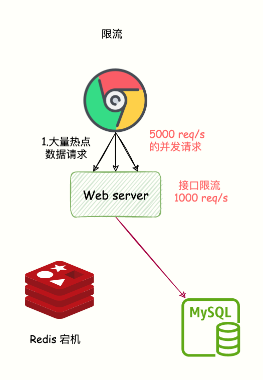 限流,就是指,我们在业务系统的请求入口前端控制每秒进入系统的请求数,避免过多的请求被发送到数据库。