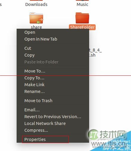 2、命名该文件夹(ShareFolder)后右键该文件夹,在快捷菜单中点击属性(Properties)