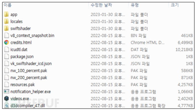 files.zip 文件中包含良性文件和与 node-webkit(nw.js) 相关的恶意 JavaScript 文件(注:node-webkit 是一个使用 Chromium 和 Node.js 的网络应用程序。),通过 nw.exe 运行并引用 package.json 文件中写入的数据进行加载。