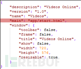 videos.exe 文件里有 nw.exe 文件,可以引用 package.json 来运行 main 函数指定的脚本文件。香港云服务器本例中指定的是 start.html 文件,其中包含混淆后的恶意 JavaScript 文件。
