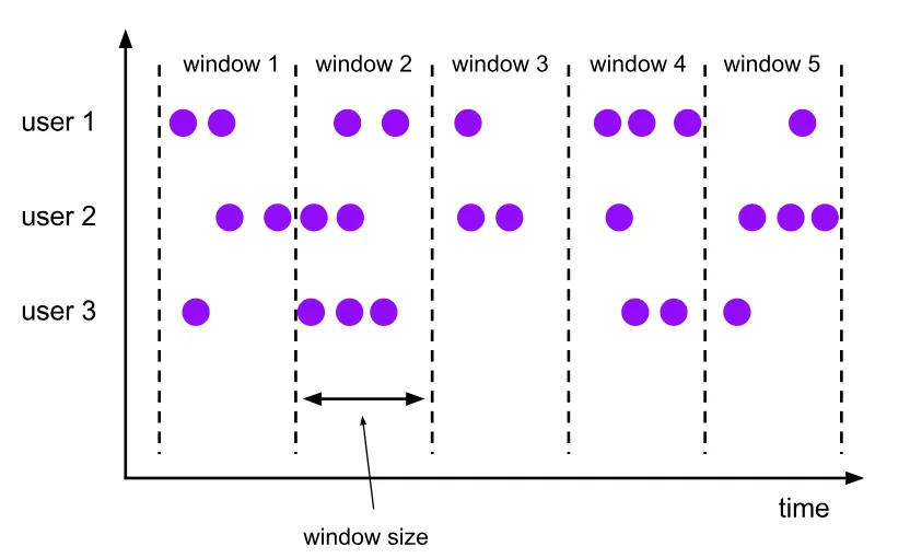 滚动窗口将数据流分割成不重叠、连续的时间间隔。每个窗口都是独立的,窗口长度是固定的。例如,如果设置了一个5分钟的固定时间窗口,那么数据流会被划分为0-5分钟、5-10分钟、10-15分钟等时间段。每个窗口都会独立处理,适用于需要定期重置计数或计算的场景。