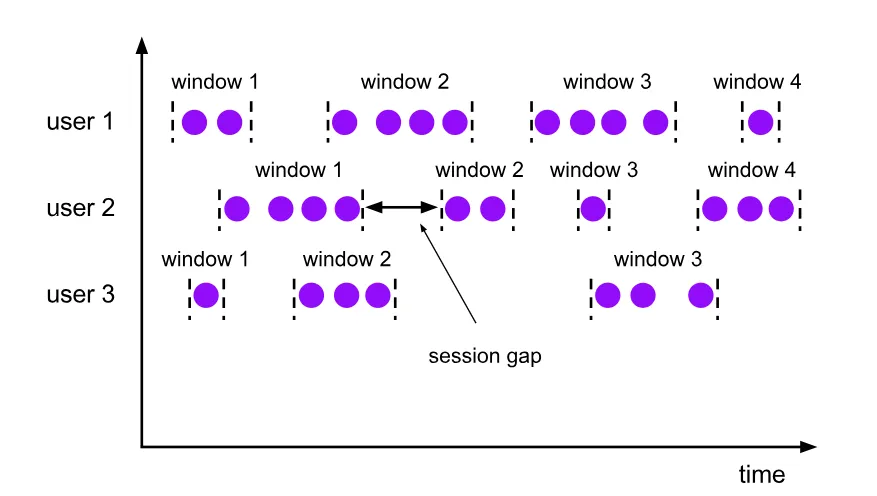 会话窗口是动态长度的窗口,它根据数据流的活动来定义。会话窗口在数据活动(即事件)发生时开启,在一定的不活动时间段(称为超时时间或间隔)之后关闭。这种类型的窗口适用于活动或会话驱动的场景,比如用户的网页浏览行为分析。